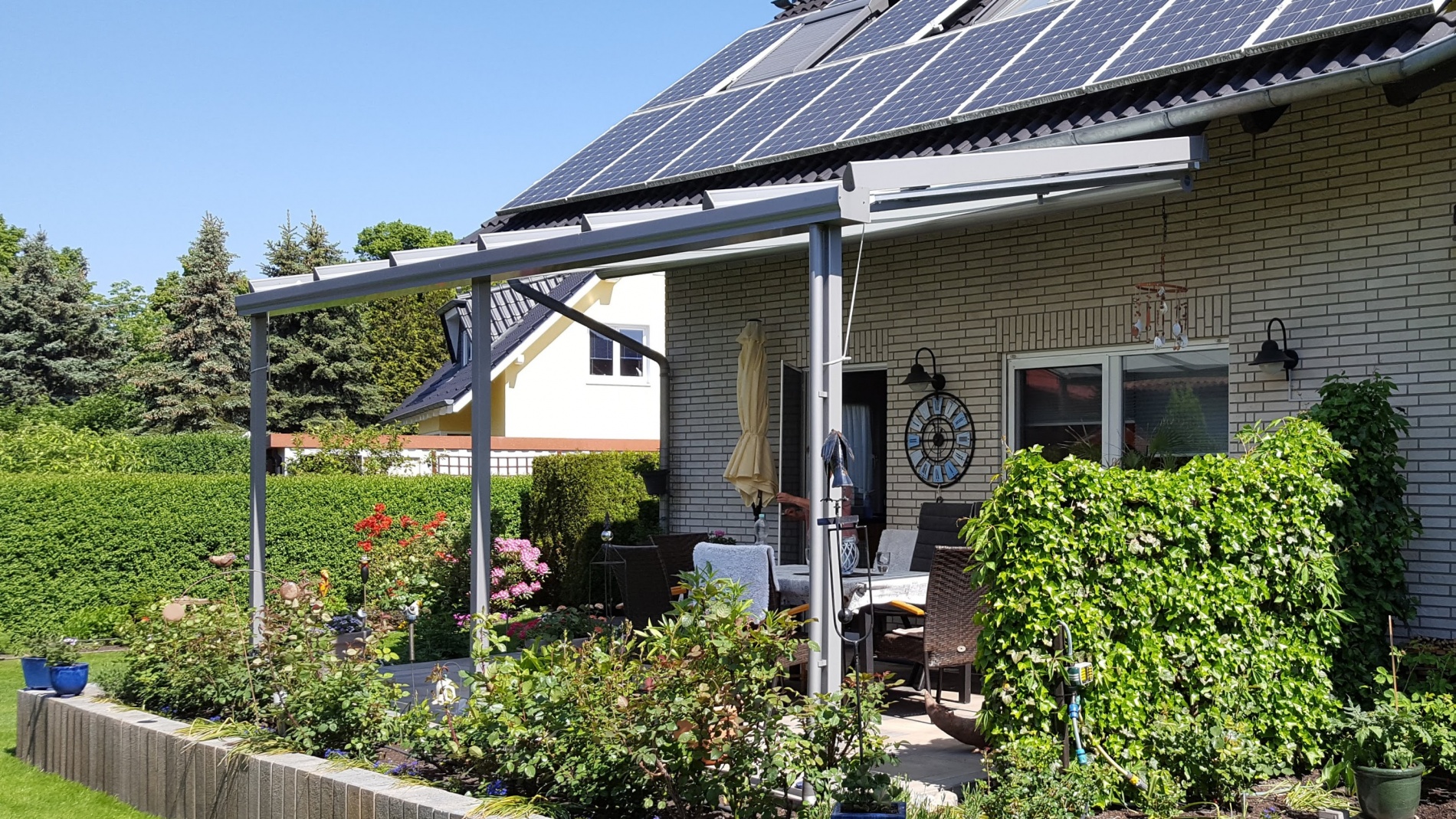 Dach und Stützen aus Alu, zahlreiche Dachformen wie Pult-, Walm-, Satteldach, Dacheindeckung wahlweise Kunststoff-Stegplatte oder VSG 10mm, Standardfarbe RAL 9016 weiß, seidenmatt, alternativ jeder RAL-Ton, auch in feinstruktur, lieferbar. Einbau von Fensterelementen oder Glasschiebetüren mit oder ohne Rahmen, auch nachträglich, möglich.